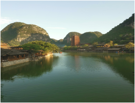 吴忠黄河楼,九层塔高,飞檐翘角;斗拱榫卯,精描彩绘。明快的色调搭配,赏心悦目。四方副楼,别致的簇拥着主楼,相互辉映,相得益彰。宽阔的主楼广场,和副楼保持着等距。气势恢宏的楼基广场,用两百九十步大理石台阶,上下连接。更显得主楼庄重雄伟,神圣威严。波光粼粼的湖水,环绕着巍峨的塔身,灵气十足。至圣先师,诸子百家,史记孝经,诗圣诗仙们,都汇聚一园,立碑塑像,文息十足。葱笼的园绿,婆娑的垂柳,茵茵的草坪,如织的人流。推高了黄河楼的颜值与人气。