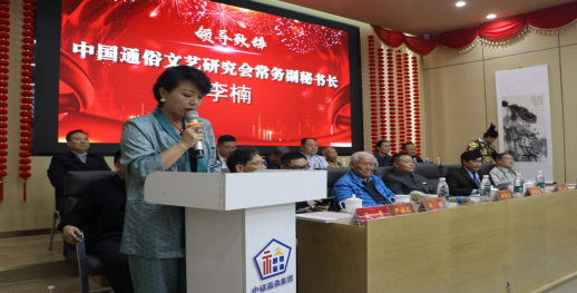 中国通俗文艺研究会常务副秘书长李楠讲话,对四川省通俗文艺研究会成立三十年表示热烈祝贺。
